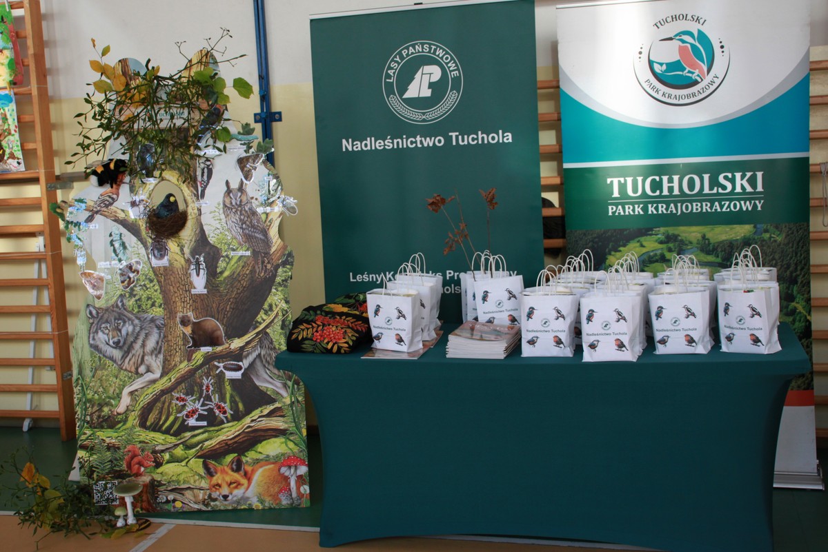 Podziękowaliśmy też opiekunom i gospodarzom szkoły w Tucholi zestawami gadżetów promocyjno-edukacyjnych: Tucholskiego Parku Krajobrazowego, Nadleśnictwa Tuchola i Trzebciny.