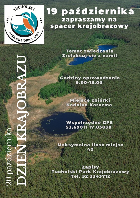 Tucholski Park Krajobrazowy zaprasza do zapisów na spacer krajobrazowy w ramach Międzynarodowego Dnia Krajobrazu, który został ustanowiony przez Radę Europy z inicjatywy Polski, a konkretnie Generalnej Dyrekcji Ochrony Środowiska. Obchodzony jest 20 października na pamiątkę podpisania Europejskiej Konwencji Krajobrazowej.