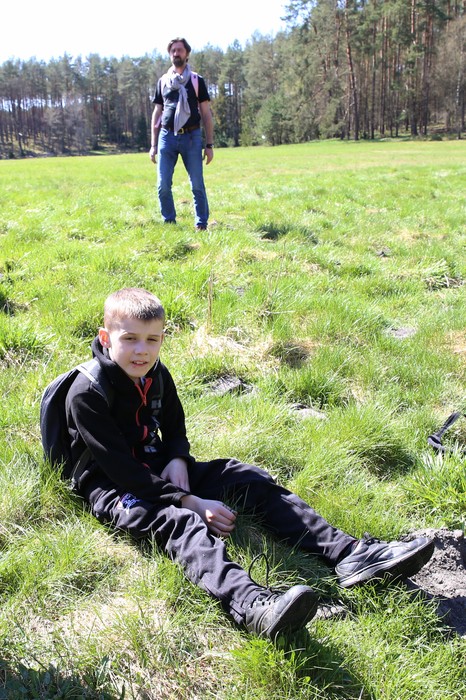 Niespodziewane spotkanie rolnika wykonującego pracę na swojej łące uatrakcyjniło naszą wycieczkę. Zapytaliśmy go spontanicznie, czy widział tu wilki. Odpowiedział, że w zeszłym roku jesienią, dokładnie w miejscu, w którym byliśmy, zaobserwował 7 osobników, co potwierdziło wyniki z naszego ubiegłorocznego monitoringu.
