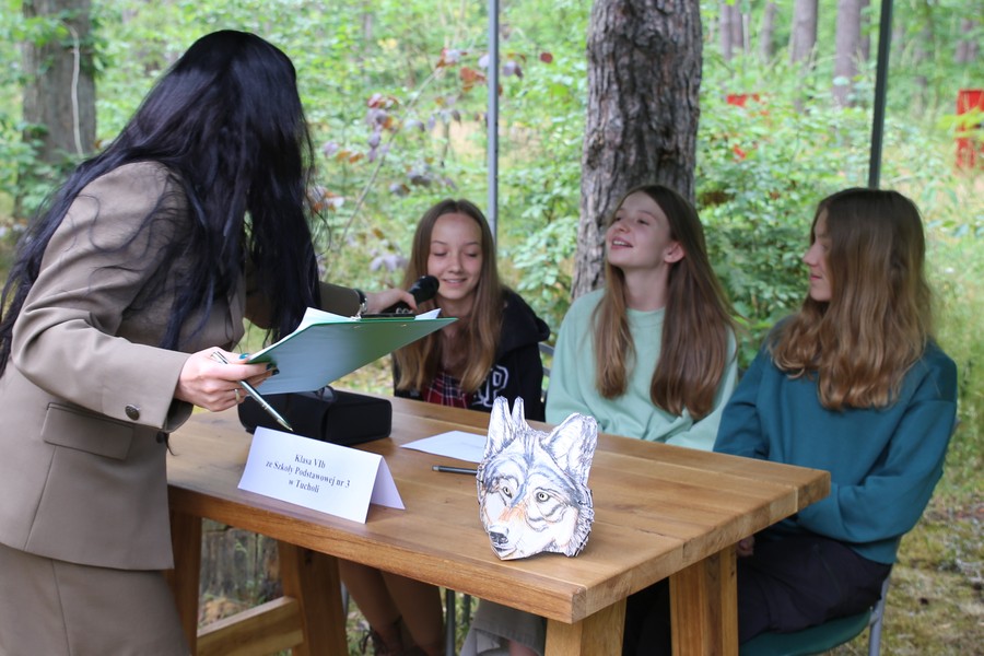 Klasy młodszej kategorii przygotowały scenkę nowej wersji baśni „Czerwony Kapturek”, w której przedstawione zostało bliskie spotkanie dziewczynki z wilkiem, z wykorzystaniem zdobytej wiedzy o rzeczywistych reakcjach wilka na spotkanie z człowiekiem, a zespoły w starszej kategorii, scenkę nowej wersji powieści „Biały Kieł”, w której przedstawiono właściwe zachowanie się człowieka wobec dzikich zwierząt. Zaprezentowane przedstawienia zostały wyreżyserowane na wysokim poziomie z esencją wiedzy, wyjątkowymi zdolnościami aktorskimi i wyrazem, któremu dodały przygotowane stroje i rekwizyty. Uczestników finału oraz kibicującą młodzież zaprosiliśmy na 5 minutowy film pt. „Jak wilki zakładają rodzinę” z cyklu Dzikie Oblicze Polski oraz przedstawiliśmy film z fotopułapek pt. „Rok z życia wilków w TPK” z monitoringu wilka prowadzonego przez pracowników Tucholskiego Parku Krajobrazowego.
