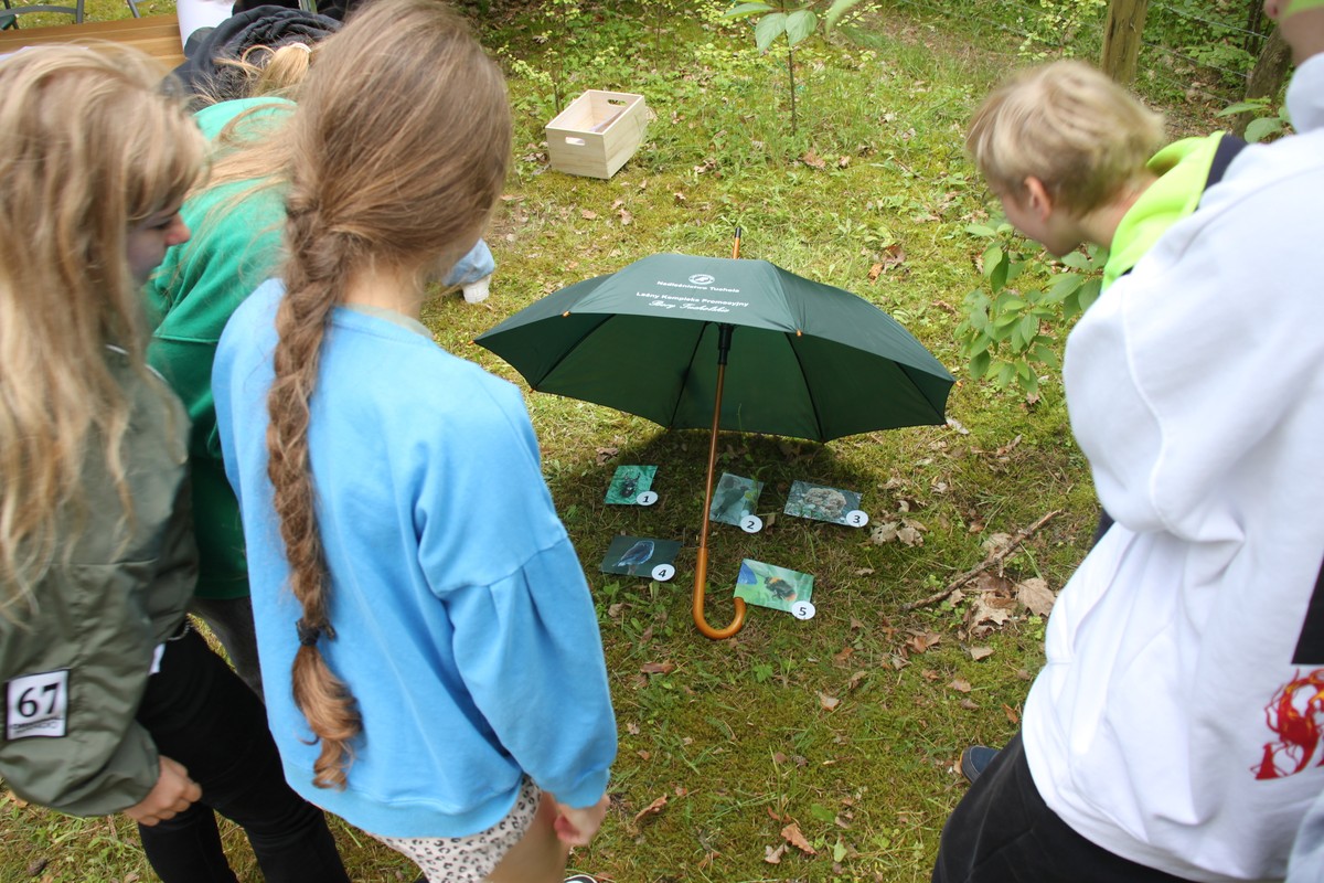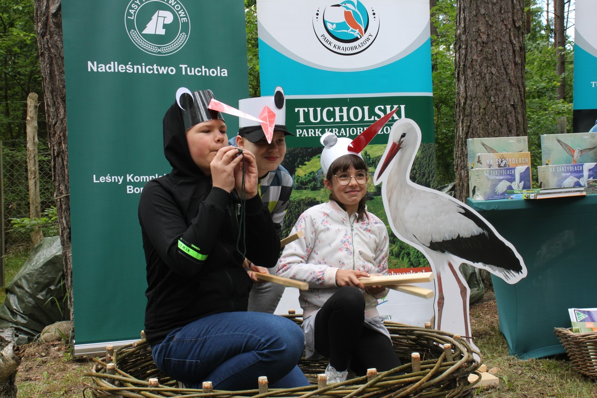 Wtorkowe spotkanie z przyrodą odbyło się w plenerze i przebiegało nie tylko w duchu rywalizacji pomiędzy finalistami, ale także edukacji. Zespoły odpowiadały na wylosowane pytania, w których sprawdzaliśmy i utrwalaliśmy zdobytą wiedzę m.in. o biologii i fizjologii, wyłoniliśmy cechy różniące dwa bociany i przedstawiliśmy organizmy żyjące na łące lub w lesie pod parasolem bocianów. Chętni odtwarzali klekot towarzyskiego bociana białego i gwizd skrytego bociana czarnego. Finaliści rozpoznawali z jakich drzew iglastych i liściastych pochodzą gałązki oraz opowiadali o zagrożeniach bocianów w Polsce i podczas wędrówek na podstawie wylosowanych fotografii. Finaliści dzięki pomocy merytorycznej nauczycieli z placówek wykazali się dużą i szczegółową wiedzą nt. bocianów czego dowodem była potrzeba przeprowadzenia dogrywki w kategorii klas starszych. W pomoc organizacyjną włączyli się harcerze Hufca ZHP w Tucholi.