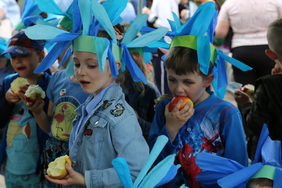 Happening uświetnił występ „Kolorowych Nutek” z Przedszkola nr 1 w Tucholi, które zatańczyły na naszym dziedzińcu „wyrastając” z doniczek w postaci kolorowych kwiatów. W wydarzeniu wzięło udział ok. 430 osób.
