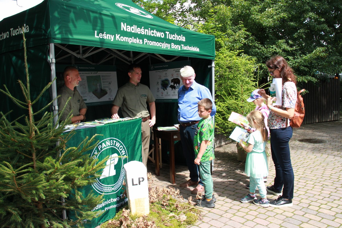 Gościliśmy Lasy Państwowe – Nadleśnictwo Tuchola bo tereny leśne to ponad 76 % powierzchni naszego parku. Leśnicy uczyli jak bezpiecznie spędzić wakacje w lesie. Turyści nauczyli się jak mogą odczytywać numery na słupkach oddziałowych w lesie i przy pomocy map turystycznych określić miejsce gdzie są. Ta wiedza jest przydatna w przypadku zabłądzenia w gęstwinie drzew. W związku z tym, że w Borach Tucholskich zamieszkał wilk, przygotowaliśmy edukację o tym drapieżniku i bezpiecznym wędrowaniu po sąsiedzku z nim. Obalaliśmy nieprawdziwe informacje o wilkach i wskazywaliśmy sposoby zachowania się w bliskich spotkaniach.