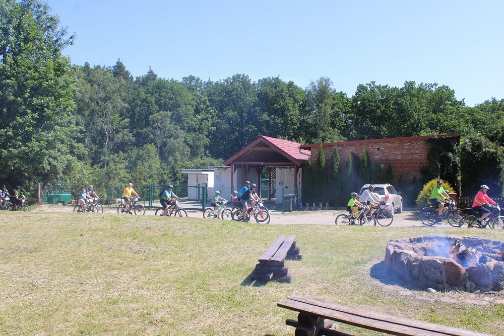 Następnie wszyscy uczestnicy wydarzenia ruszyli w trasę. Trasa wyprawy rowerowej liczyła ok. 20 km i prowadziła głównie polnymi ścieżkami wśród malowniczych pól oraz drogami leśnymi. Przystankiem na trasie była wizyta w Leśnictwie Dąbie, gdzie na uczestników rajdu czekało ognisko oraz poczęstunek przygotowane przez Nadleśnictwo Runowo i LGD Nasza Krajna oraz możliwość oznakowania swojego roweru przez Komendę Powiatową Policji w Sępólnie Krajeńskim. Ponadto pan Jarosław Tadych- Starosta Sępoleński wraz z panem Waldemarem Kuszewskim- Burmistrzem Więcborka wręczyli puchary dla najmłodszego i najstarszego uczestnika rajdu. Po przerwie uczestnicy ruszyli w drogę powrotną na metę w Więcborku. Krajeński Park Krajobrazowy bardzo dziękuje współorganizatorom i sponsorom za organizację rajdu rowerowego oraz wszystkim uczestnikom za udział. Do zobaczenia na kolejnych rajdach rowerowych !