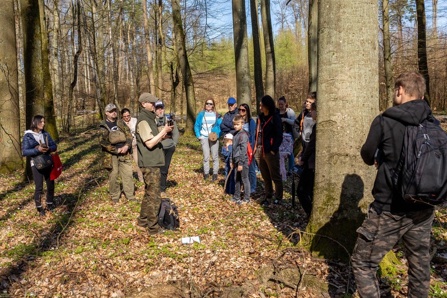 Naszym przewodnikiem był Łukasz Gwiździel – znany fotograf, a jednocześnie pracownik Nadleśnictwa Lutówko. Tematem Jego fotografii jest w dużej mierze bogactwo przyrodnicze Krajny. O swojej pasji opowiedział nam w okolicznościach budzącej się do życia wiosennej przyrody, którą wielokrotnie uwiecznia na swoich zdjęciach. Odwiedziliśmy trzy rezerwaty, poznaliśmy najciekawsze informacje o nich oraz o bogactwie fauny i flory… a także o tajnikach fotografii przyrodniczej. Wybór tych miejsc na tegoroczną eskapadę nie był przypadkowy, bowiem hasło bieżącej akcji związane jest z Mikołajem Kopernikiem. W tym roku przypada 550. rocznica urodzin tego wybitnego astronoma. Znaczna część jego pracy opierała się na obserwacji nieba. Rezerwaty przyrody są położone daleko od siedzib ludzkich. Wycieczka w ich okolice pozwoliła poznać miejsca, w których w nocy można obserwować niebo najmniej zanieczyszczone światłem. Zwieńczeniem wycieczki był ciepły posiłek zapewniony przez Nadleśnictwo Lutówko.