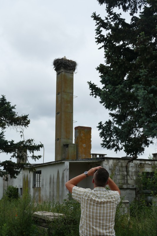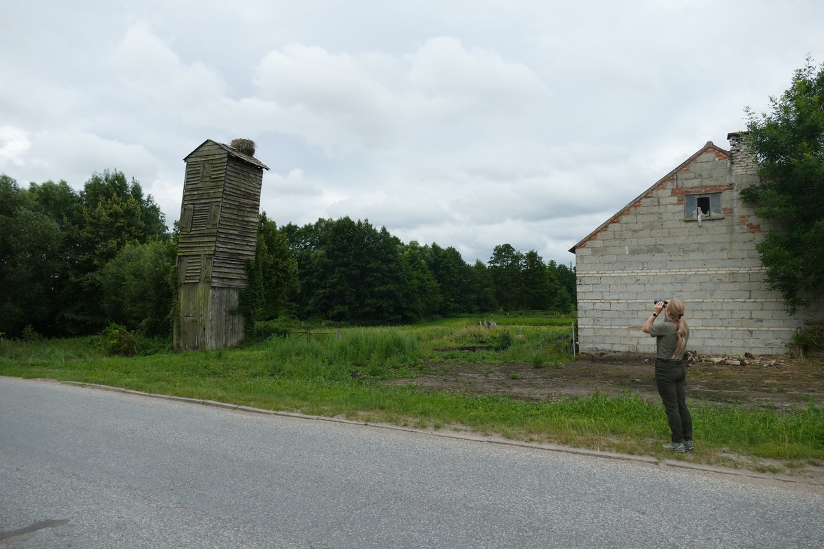 - Mirosław Łebek z KPK podczas obserwacji bocianów w Dużej Cerkwicy (Fot. K. Łebek – KPK)