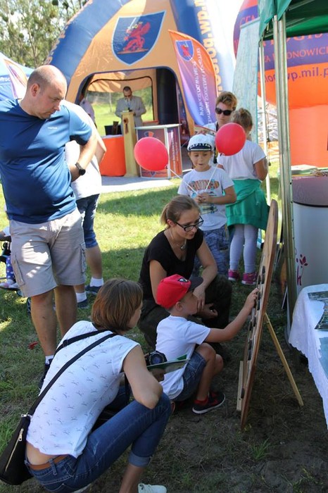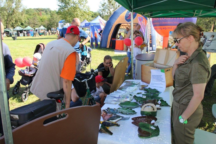 Stoisko promocyjno-edukacyjne Górznieńsko-Lidzbarskiego Parku Krajobrazowego i „Zielony zawrót głowy” – fotorelacja z festynu żołnierskiego (15.08.2017) w Leśnym Parku Kultury i Wypoczynku w Myślęcinku.