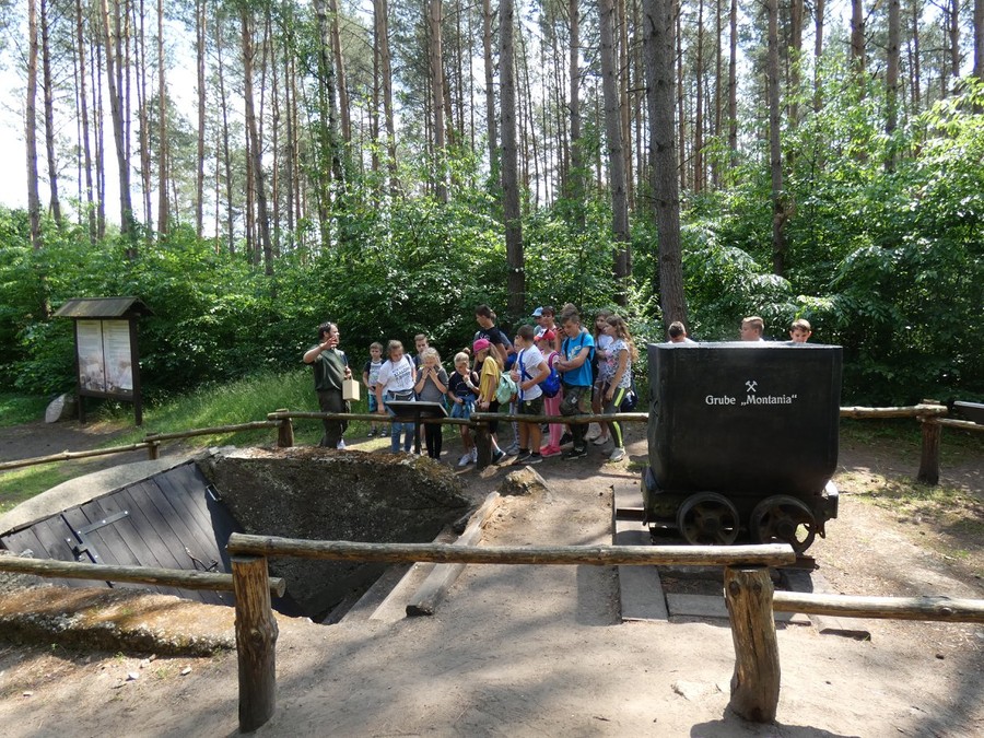 Uczniowie mieli okazję zwiedzić „Górniczą Wioskę”, gdzie poznali historię podziemnej kopalnia węgla brunatnego „Montania”. Dowiedzieli się również, co to jest pomnik przyrody i kiedy drzewo zasługuje na to zaszczytne miano.