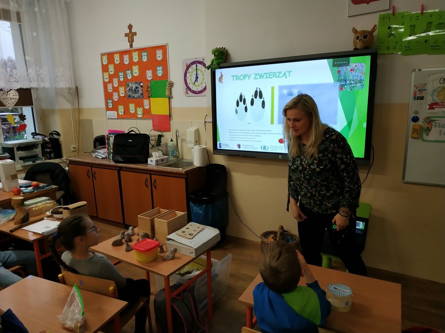 Kolejne zajęcia dotyczące rozpoznawania śladów i tropów zwierząt. Tym razem uczestnikami były najmłodsi uczniowie SP 3 w Brodnicy. Dzieci nauczyły się, że o obecności zwierząt w lasach, na łąkach czy nad wodą świadczą nie tylko odciski ich łap, ale dużo innych ciekawych śladów. Dowiedziały się jak rozróżniać poszczególne gatunki zwierząt po ich tropach, kryjówkach i żerowiskach, a także jak je rozpoznać, gdzie szukać i co ciekawego można z nich wyczytać. Oczywiście wiele radości sprawiło odbicie w własnego tropu w masie solnej…. zabawa była przednia:)