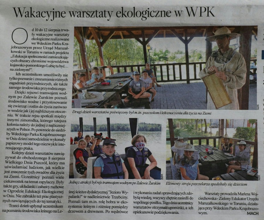W dniach 10-12 sierpnia we Wdeckim Parku Krajobrazowym odbywały się wakacyjne warsztaty ekologiczne realizowane przez Urząd Marszałkowski w Toruniu w ramach projektu „Edukacja społeczności zamieszkujących obszary chronione województwa kujawsko-pomorskiego: Lubię tu być… na zielonym!” Każdy z trzech dni warsztatów angażował uczestników do poznawania różnych środowisk i zagadnień przyrodniczych.