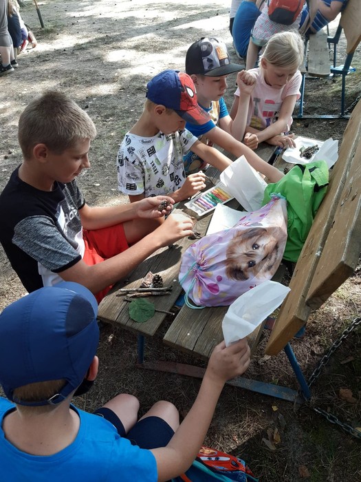 Trzeciego dnia warsztatów gościliśmy na ścieżce dydaktycznej „Jezioro Wypalanki” w Nadleśnictwie Trzebciny gdzie poznawaliśmy środowisko leśne. Po leśnej wędrówce i leśnych zadaniach sprawdzających zdobytą wiedzę wszyscy chętnie zasiedli do wspólnego posiłku. Tego dnia był też czas na rozdanie upominków wszystkim uczestnikom warsztatów i podziękowanie dla Opiekunów.