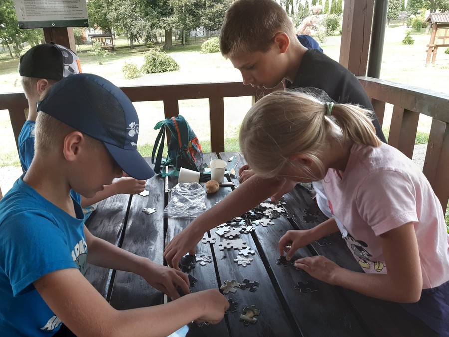 Rejs tramwajem wodnym po Zalewie Żurskim był okazją do poznawania środowiska wodnego, przystosowań zwierząt i roślin do życia w wodzie i jej otoczeniu. Uczestnicy poznali także barwnego mieszkańca tego obszaru – zimorodka i samodzielnie wykonali jego papierowy model. Był też czas na trudną puzzlową rywalizację – jak się okazało układanie puzzli w grupie nie należy do łatwych zadań.
