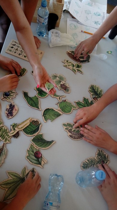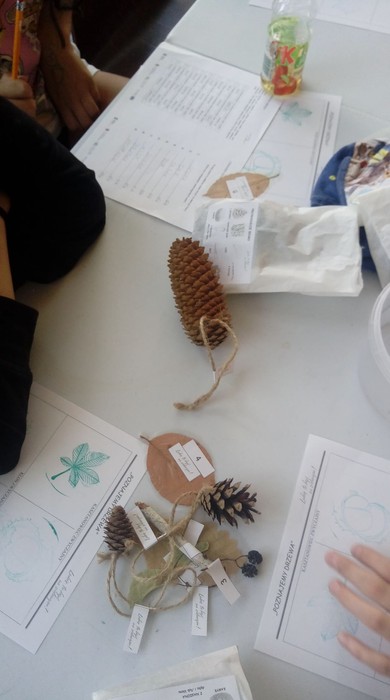 Warsztaty dendrologiczne rozpoczęły się od krótkiej prezentacji na temat drzew naszych lasów. Uczestnicy pomyślnie rozwiązali quiz i zadania , które ułatwiły późniejsze poznawanie drzew podczas wyprawy do lasu. Był też czas na rozpoznawanie części drzew (owoc, szyszka, kora, liść) pochodzących z różnych gatunków.