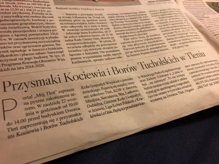 22 września przed budynkiem Dworca w Tleniu odbyło się pyszne zakończenie sezonu. Do udziału w wydarzeniu organizowanym przez Mój Tleń zaproszone zostały koła gospodyń z Jaszcza, Miedzna, Sierosławia, Wer, Laskowic.