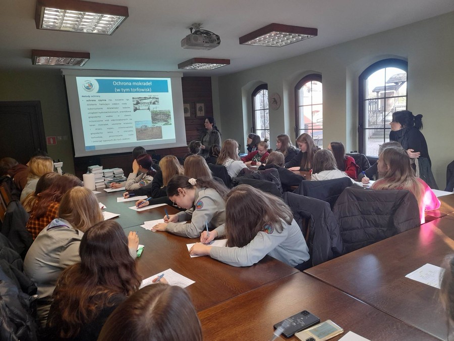 W związku ze Światowym Dniem Mokradeł obchodzonym co roku 2 lutego na pamiątkę podpisania Konwencji Ramsarskiej, Tucholski Park Krajobrazowy zaprosił szkoły średnie z Tucholi do wzięcia udziału w prelekcjach dotyczących ochrony torfowisk. Nasze zaproszenie spotkało się z szerokim zainteresowaniem. W dniach 22-23 lutego br. prelekcji pt. „Torfowiska – ostoje bioróżnorodności” wysłuchało 180 uczniów wraz z opiekunami. W naszych zajęciach wzięły udział klasy I, III, IV, a także klasa z rozszerzoną geografią z Liceum Ogólnokształcącego im. Bartłomieja Nowodworskiego w Tucholi, klasa III z Zespołu Szkół Licealnych i Agrotechnicznych im. Leona Janty-Połczyńskiego oraz klasa VIII ze Szkoły Podstawowej nr 3.