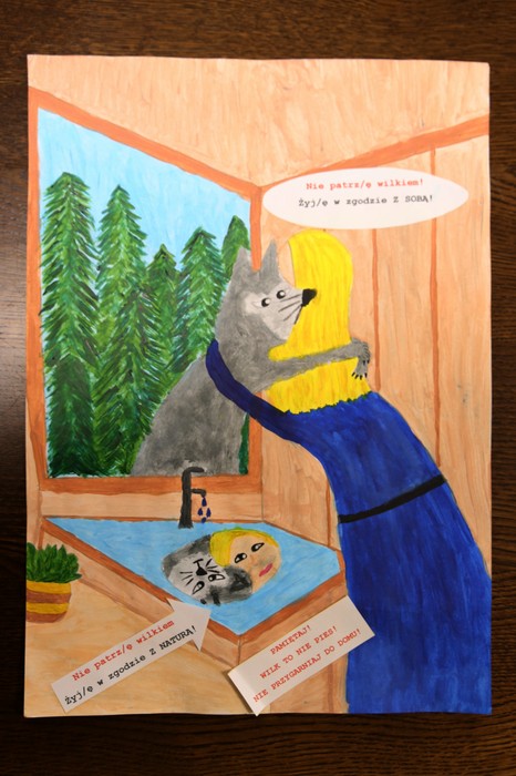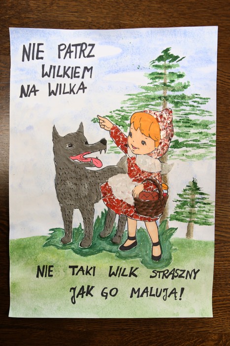 Do I etapu każda z klas przygotowała dodatkowo plakat pt. „Nie patrz wilkiem na wilka”, który poprzez swój wydźwięk społeczny ma pełnić rolę edukacyjną i informacyjną o rzeczywistej naturze wilka.