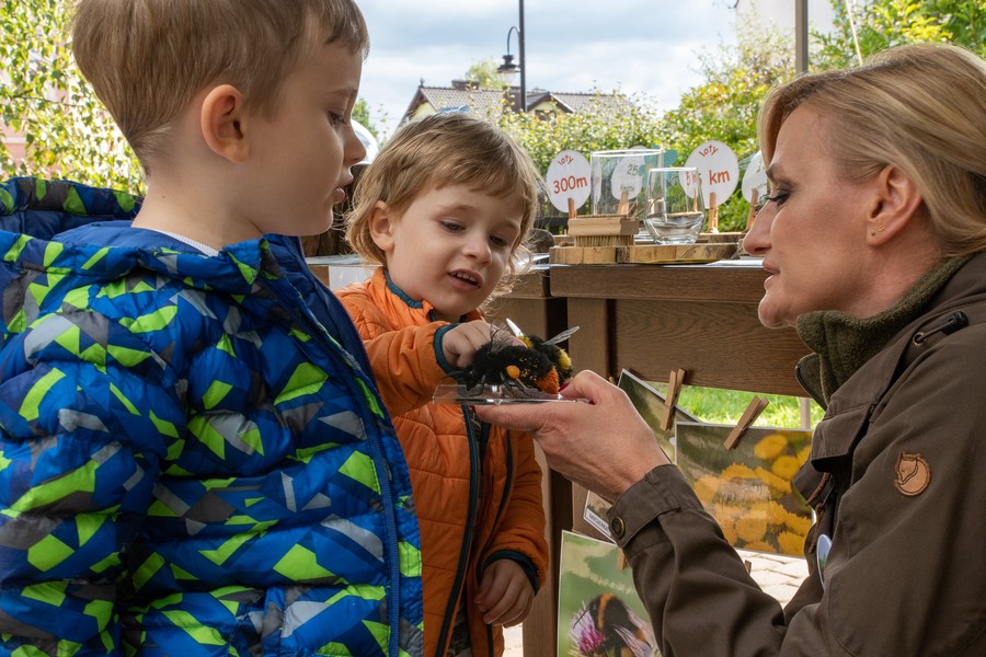 Na kolejnym stoisku zaprezentowano świat pszczół. Dowiedzieliśmy się, dlaczego dzikie pszczoły są lepszymi zapylaczami, niż wszystkim dobrze znana pszczoła miodna. Puchate trzmiele odwiedzają więcej kwiatów, na swoim ciele mają więcej włosków, do których przyczepia się pyłek, są aktywne przez większą część dnia, mają dłuższy języczek – to tylko niektóre argumenty obalające sławę naszej „celebrytki” – pszczoły miodnej. Pszczoły samotnice nie produkują miodu i nie żądlą. To przede wszystkim im zawdzięczamy owoce i warzywa. Odwiedzający stoisko mogli zobaczyć nowoczesne metody zapylania stosowane już na świecie – drony i bańki mydlane. Przekonali się jednak, że nasze rodzime dzikie pszczoły pełnią tę rolę lepiej i powinniśmy je chronić.