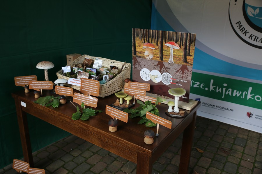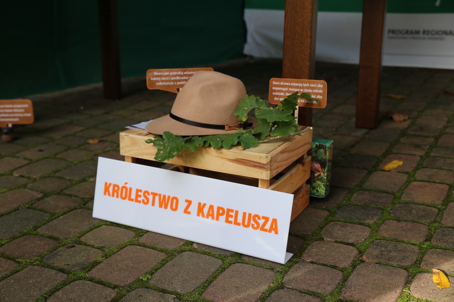 Kolejne stoisko prezentowało „Królestwo z kapelusza”, czyli świat grzybów. Szczególną uwagę poświęcono dwóm grupom – grzybom saprotroficznym, które są wielkimi sprzątaczami świata. Bez nich kula ziemska byłaby pokryta szczątkami martwych roślin i zwierząt. Stwarzają one przestrzeń do życia dla innych organizmów. Są w stanie rozłożyć właściwie wszystko – począwszy od ściółki, drewna, ziemi, przez ropę naftową, aż do plastiku. Jednak ich wykorzystanie w recyklingu jest nadal w fazie badań. Mogłyby uwolnić nas od ton tego surowca, którym zasypujemy naszą planetę. Druga bardzo ważna grupa grzybów, to grzyby mykoryzowe. Aż 90% roślin wchodzi w korzystne dla obu stron powiązania z grzybami. Uczestniczą w nich wszystkie drzewa lasotwórcze, które za pomocą strzępek są w stanie komunikować się nawet na duże odległości. Ta sieć to WOOD WIDE WEB, którą można porównać do leśnego Internetu.