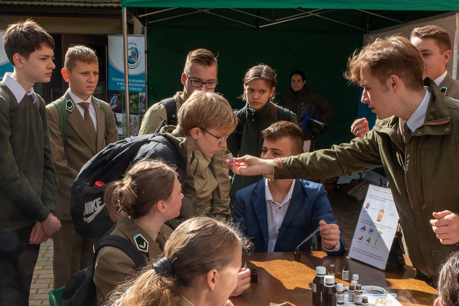 Idąc do lasu na grzyby można paść ofiarą kleszczy. To pajęczaki, które występują na wysokości 1-1,5 m w zaroślach, na wysokich trawach, wzdłuż często uczęszczanych przez ludzi i zwierzęta ścieżek. Obawiamy się ich ze względu na groźne choroby (m.in. boreliozę i odkleszczowe zapalenie mózgu), które przenoszą. Uczestnicy wydarzenia dowiedzieli się, w jaki sposób kleszcze nas wyczuwają, wbijają się w naszą skórę i jak je prawidłowo usunąć. Mamy na to od 24 do 48 godzin. Po tym czasie przekazują do wnętrza naszego ciała bakterie i wirusy. Na stanowisku obsługiwanym przez wolontariuszy z Technikum Leśnego można było wykonać swój własny, naturalny preparat przeciwko kleszczom.