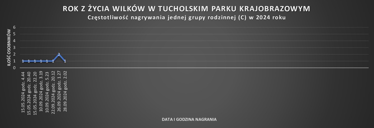 W grupie B rejestrowaliśmy zawsze jednego osobnika, jednak z informacji od mieszkańców okolicznych miejscowości wiemy, że widywane są dwa.