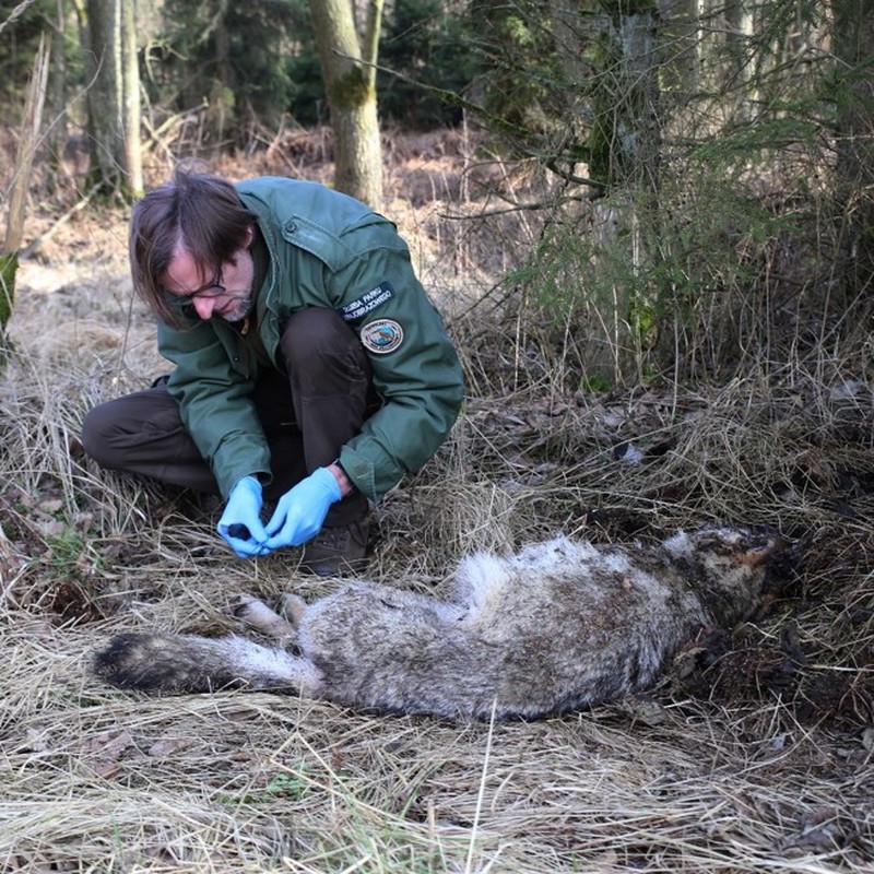W marcu otrzymaliśmy informację o znalezionym truchle wilka. Przyczyna śmierci była nieznana. Sprawą zajęła się policja. W tym przypadku umożliwiono nam pobranie próbek (tkanki, sierść) do badań genetycznych.