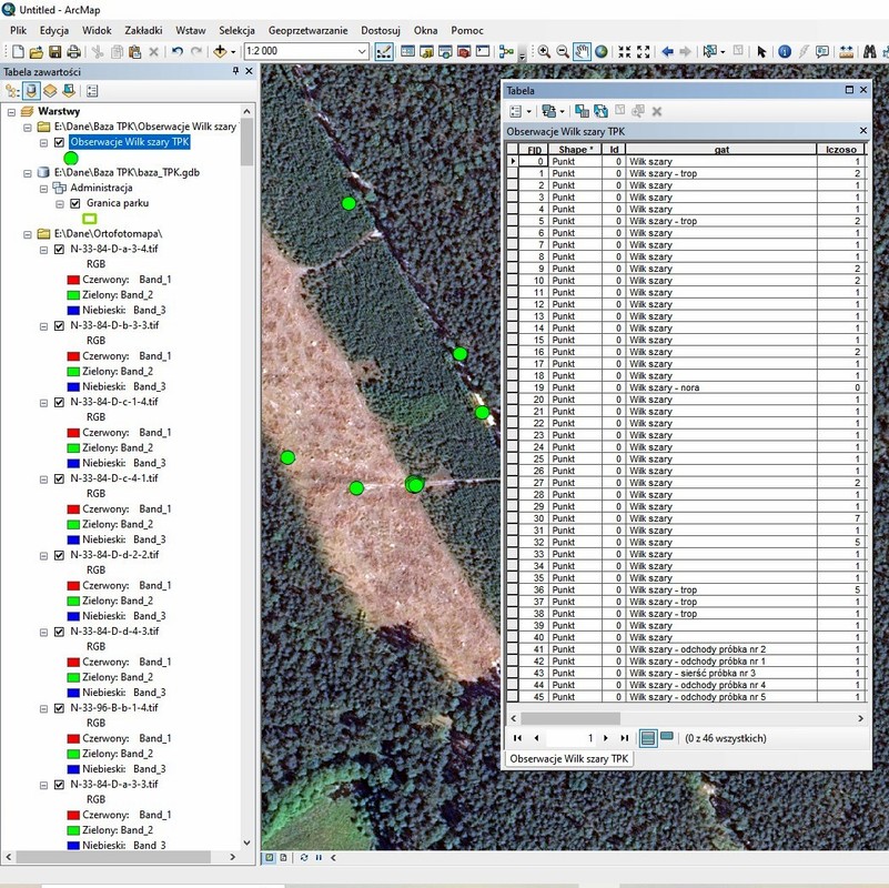 Wszystkie pozyskane z terenu dane wprowadziliśmy do naszego systemu informacji geograficznej (GIS).