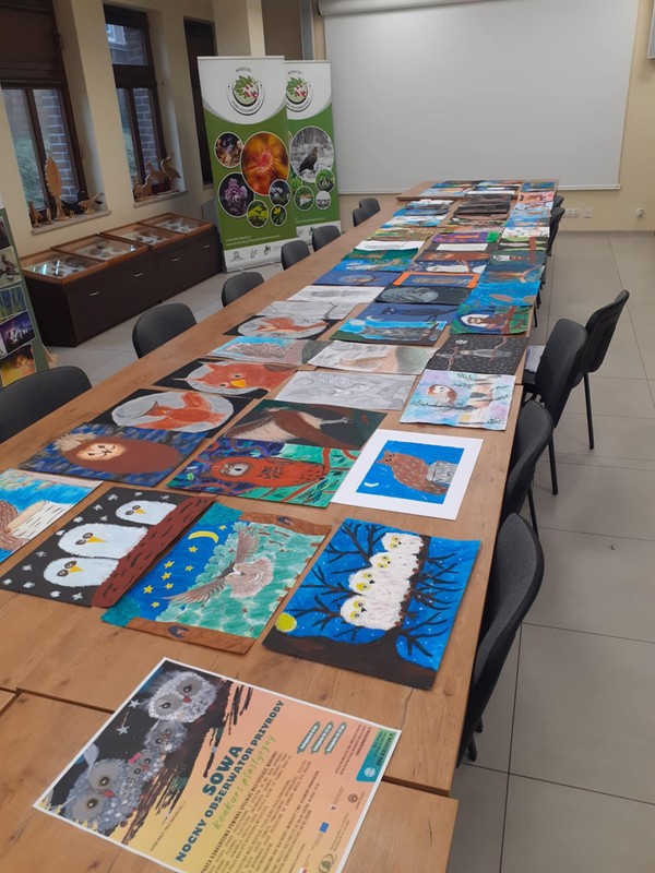 Wszystkim wyróżnionym i laureatom serdecznie gratulujemy. Osoby które przybyły na rozdanie nagród miały okazję uczestniczenia w wyjątkowym wydarzeniu jakim jest Noc Sów. Była to doskonała okazja do bliższego poznania i zobaczenia na żywo tajemniczych stworzeń jakimi są sowy. Zgodnie z zapisem regulaminu prace przekazane na konkurs pozostają własnością organizatora, dlatego wśród otrzymanych nagród były też spersonalizowane kubki i worki z pracami nagrodzonych, tak aby pozostały one również w pamięci Artystów.