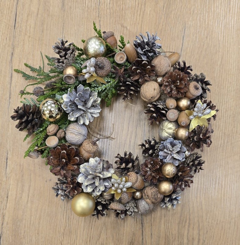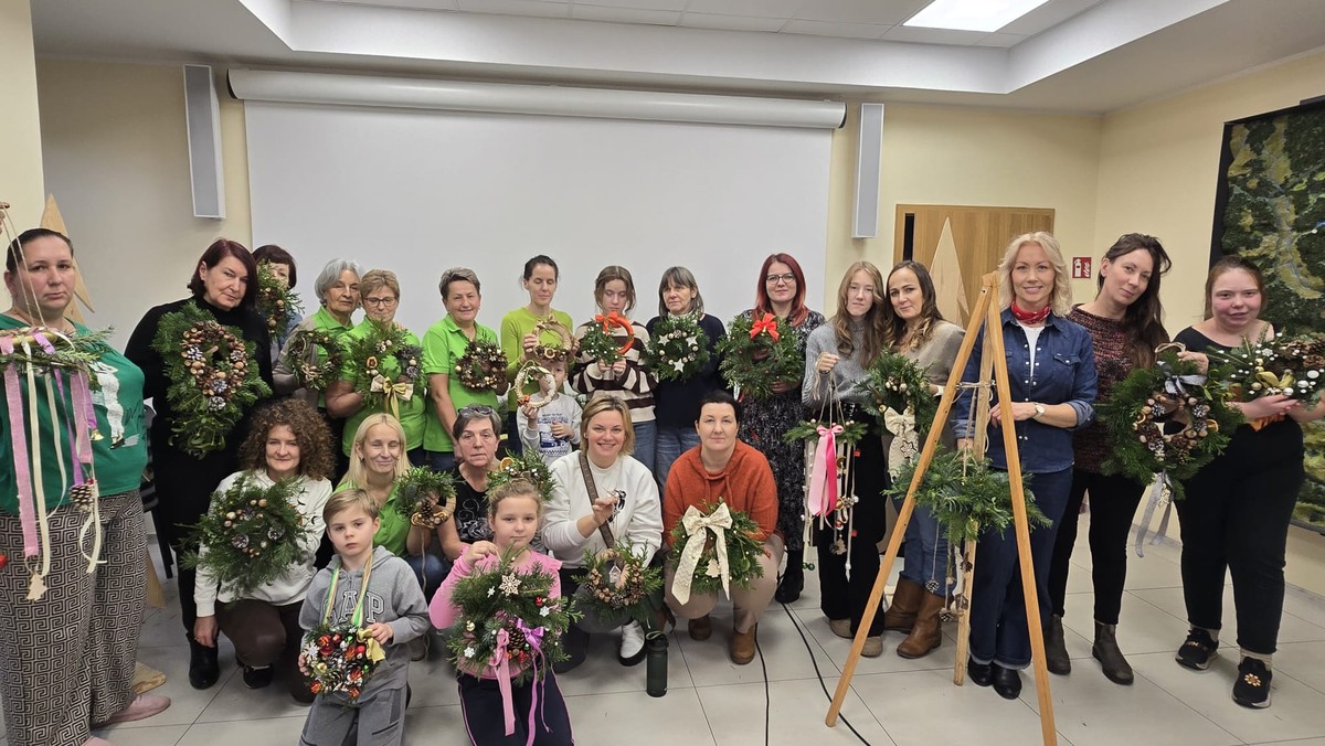 Po dawce wiedzy, przyszedł czas na praktykę. Pełni inspiracji, uczestnicy warsztatów przystąpili do tworzenia własnych, niepowtarzalnych wianków. Tworzenie ozdób bożonarodzeniowych to nie tylko świąteczny rytuał, ale moment, w którym tradycja przeplata się z osobistym doświadczeniem. Zapach igliwia i świątecznych przypraw wypełnił całe pomieszczenie, tworząc niezwykłą atmosferę. Gotowe wianki, pełne blasku i oryginalnych dekoracji, zachwycały pomysłowością i starannością wykonania. Z pewnością staną się one ozdobą niejednego domu, wnosząc do niego świąteczny nastrój. Pod koniec, tradycyjnie jak co roku padał śnieg, tworząc niepowtarzalną, zimową aurę.