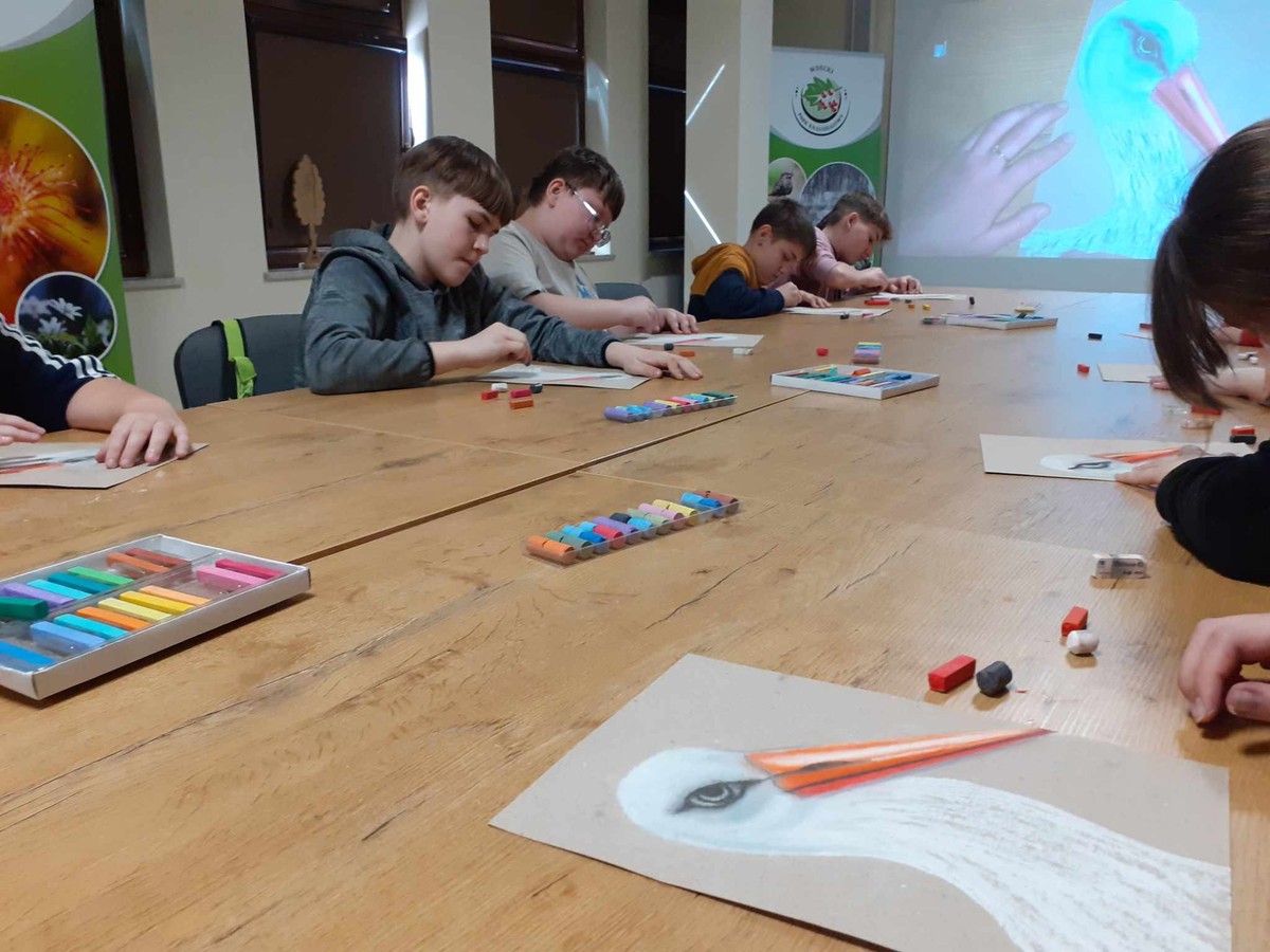 - Warsztaty malowania pastelami suchymi bociana białego, fot. WPK