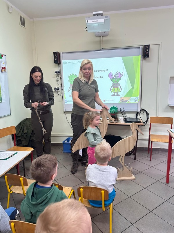 - Prezentacja materiałów edukacyjnych o bocianach, fot. SP Zielonka