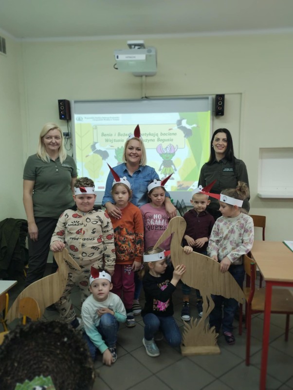 Zajęcia o bocianach przeprowadzono też w innych placówkach: Przedszkolu Miejskim nr 6 w Toruniu i Szkole Podstawowej we Wierzchach. Po tak licznych spotkaniach, z przyjemnością można stwierdzić, że w tym roku widziano już wiele bocianów, a to za sprawą dzieci, które wcieliły się w rolę tych ptaków podczas warsztatów, tworząc bocianie opaski.