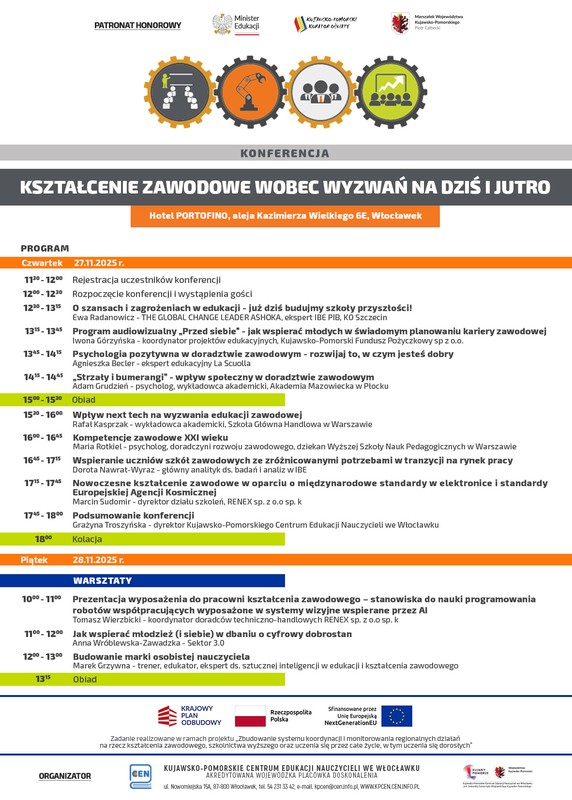 Konferencja pt. „Kształcenie zawodowe wobec wyzwań na dziś i jutro” Kujawsko-Pomorskie Centrum Edukacji Nauczycieli we Włocławku zaprasza na bezpłatną konferencję pt. „Kształcenie zawodowe wobec wyzwań na dziś i jutro” realizowaną w ramach projektu: Zbudowanie systemu koordynacji i monitorowania regionalnych działań [...] Czytaj dalej