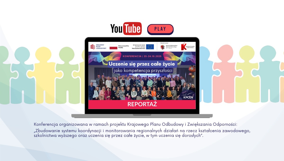 Wideoreportaż z konferencji „Uczenie się przez całe życie jako kompetencja przyszłości” W dniach 23 i 24 października 2025 r. spotkaliśmy się w Hotelu Rondo w Wąbrzeźnie z uczestnikami organizowanej przez toruński KPCEN konferencji „Uczenie się przez całe życie jako kompetencja przyszłości”. [...] Czytaj dalej