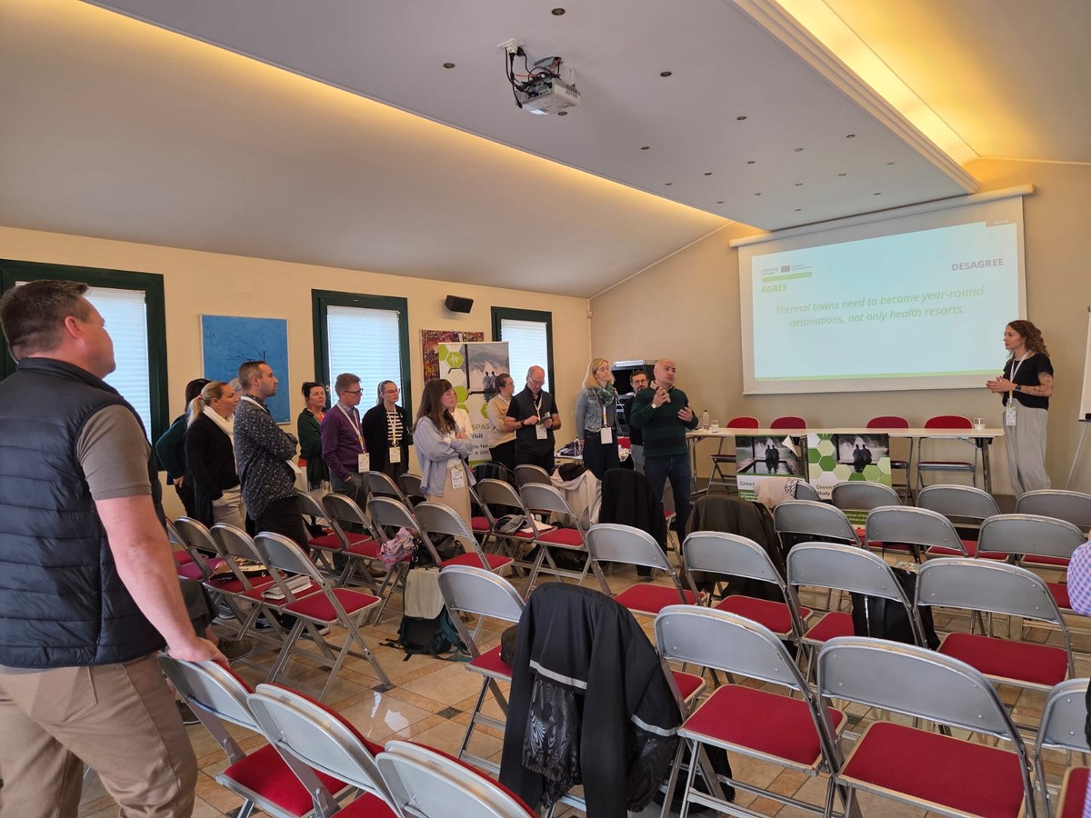 W dniach 7 – 9 października 2025 r. partnerzy i interesariusze projektu GreenSpas spotkali się we włoskim Montegrotto Terme, jednym z najbardziej znanych europejskich kurortów termalnych, które prezentując swoje dobre praktyki udowodniło, że tradycję uzdrowiskową można połączyć z nowoczesną energią geotermalną.