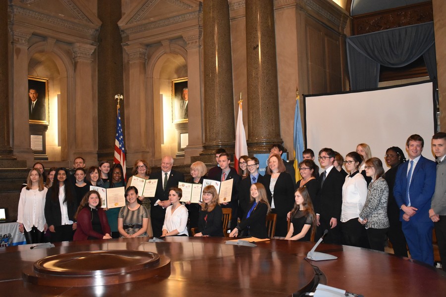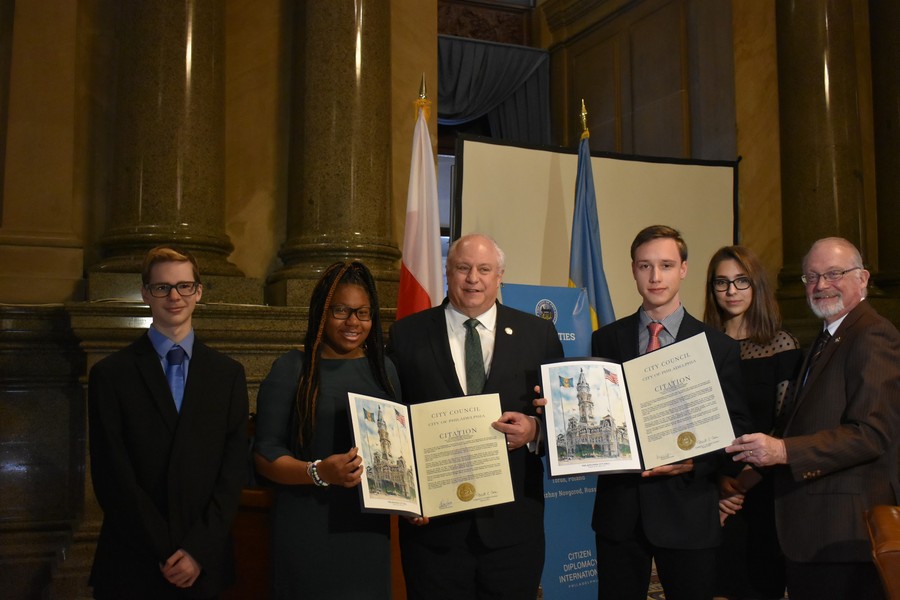 Ostatniego dnia wymiany uczniów zaproszono do filadelfijskiego ratusza na spotkanie z przedstawicielami Rady Miasta z okazji dziesięciolecia współpracy pomiędzy IV Liceum Ogólnokształcącym a szkołami w Filadelfii. Była to wspaniała okazja do przedstawienia naszego regionu. Prezentacje wcześniej przygotowane cieszyły się dużym zainteresowaniem ze strony urzędników i mediów. Jeden z uczniów udzielił krótkiego wywiadu przedstawicielom lokalnej prasy.