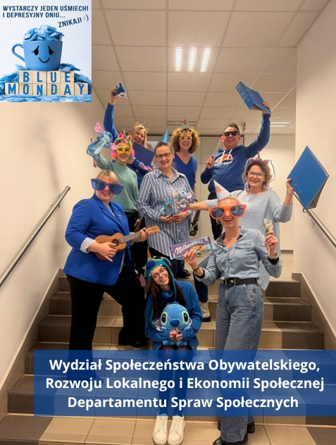 - Pracownicy Wydziału Społeczeństwa Obywatelskiego, Rozwoju Lokalnego i Ekonomii Społecznej Departamentu Spraw Społecznych, zdjęcie na konkurs „Odczarujmy Blue Monday” 2026